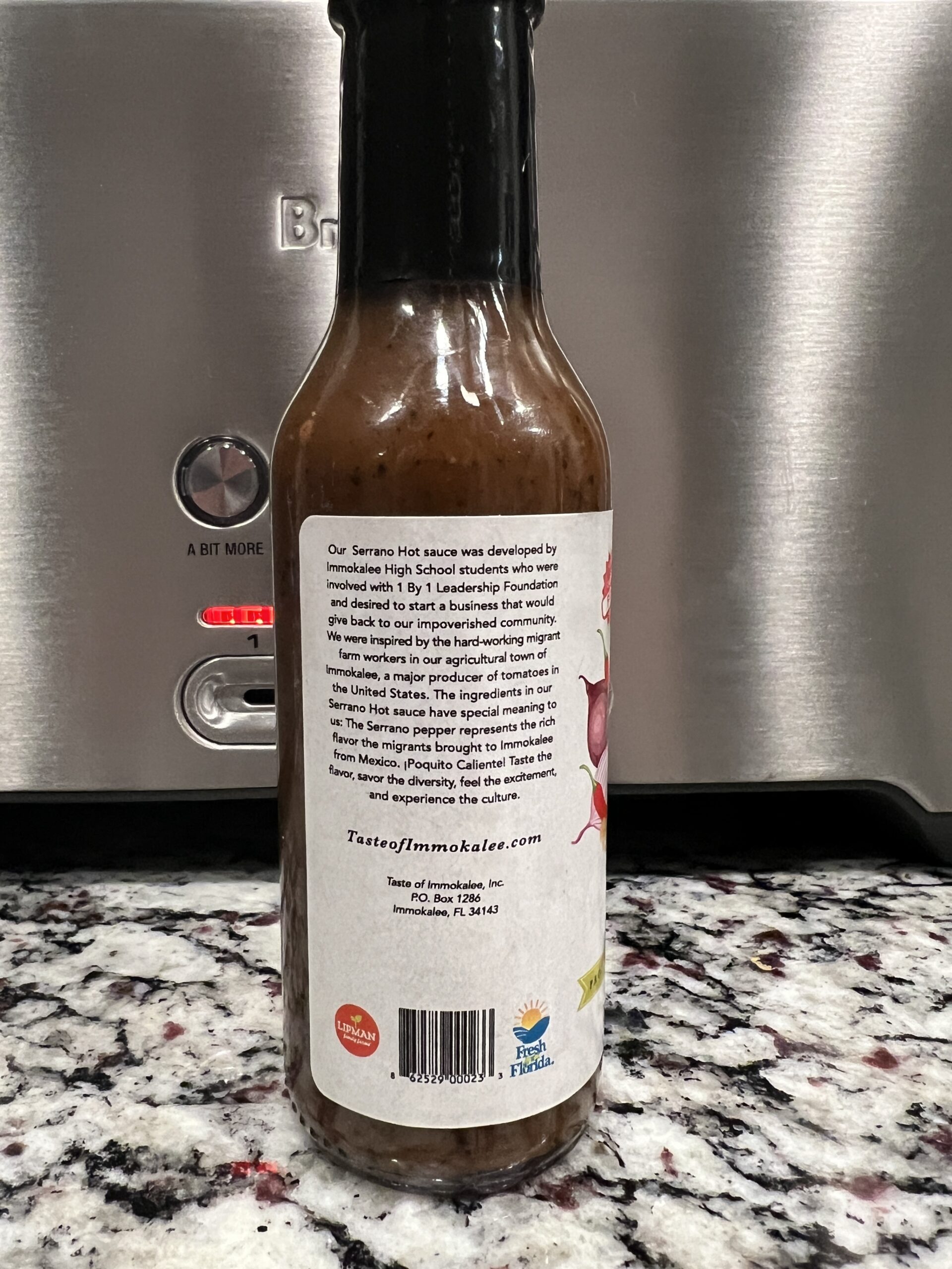 Immokalee is home to a large number of migrant farm laborers and is a major production center of tomatoes. This sauce isn’t tomato-based, but rather features the Serrano pepper, a personal favorite of mine, and one that’s very popular with the Mexican and Central American migrant laborers who bring their cultural vitality with them to Immokalee.