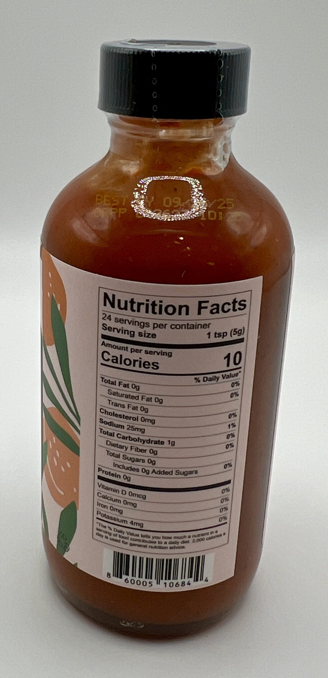 Ingredients: Bell Pepper, Distilled White Vinegar, Onion, Ghost Pepper, Peaches, Water, Garlic, Salt, Basic, Spices, Brown Sugar, Olive Oil