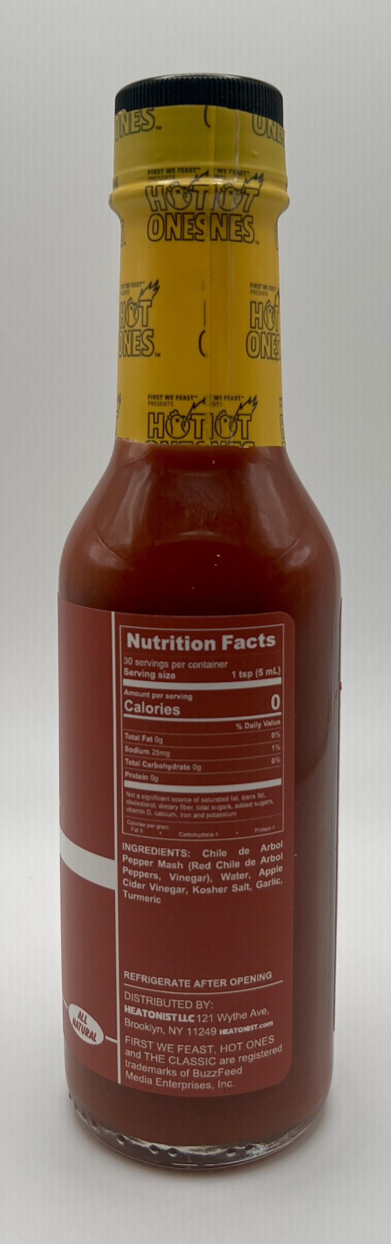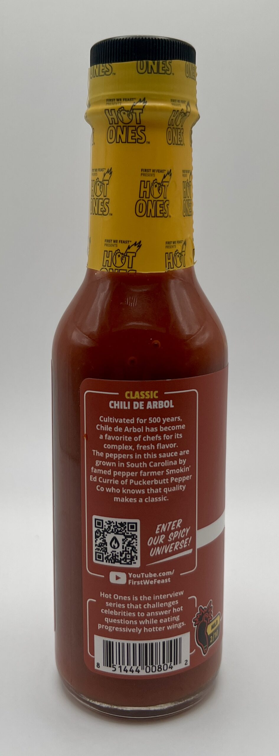 Ingredients: Chile de Arbol Pepper Mash (Red Chile de Arbol Peppers, Vinegar), Water, Apple Cider Vinegar, Kosher Salt, Garlic, Tumeric