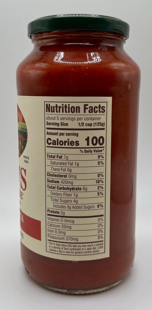 I will give Rao’s credit for making this an all natural sauce with no artificial colors, flavors, preservatives, or thickeners. Many of the competing pasta sauces on the grocery shelves use dried products and extracts of various vegetables for flavor instead of the real thing, and use lesser-quality oils rather than Olive Oil.
