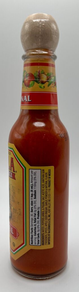 The main peppers featured in Cholula, Chile de Arbol and Pequin, are both peppers that I typically enjoy. On the other hand the first ingredient listed by volume on the label is water, which is typically a bad sign in my experience for sauces. The consistency is medium and very smooth, and the nose does have some pepper scent however not as fresh as more artisan sauces.