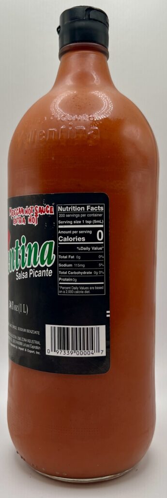 While the label lists only the nondescript “chili pepper” for the peppers used, some googling reveals the chiles used in Valentina are the puya chile, a relative of the guajillo chile. Similarly while just “spices” are listed cumin is certainly present, as is garlic. The texture of Valentina Black Label is very smooth as is common with this style of sauce with a medium to medium-thick consistency. The aroma is of dried chiles and vinegar.