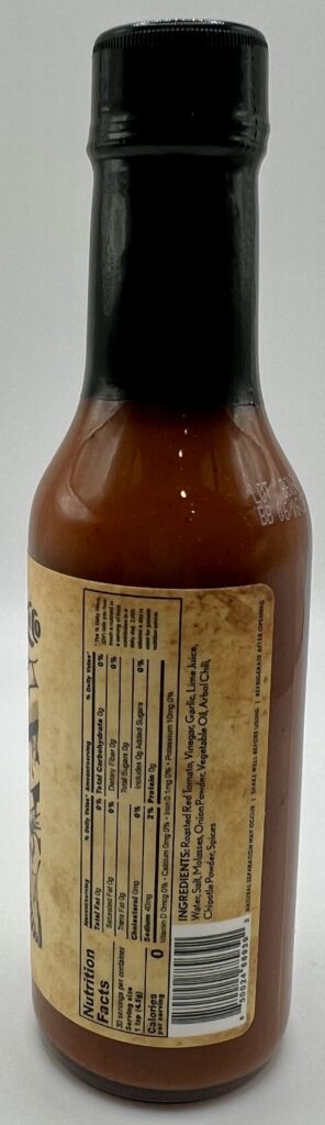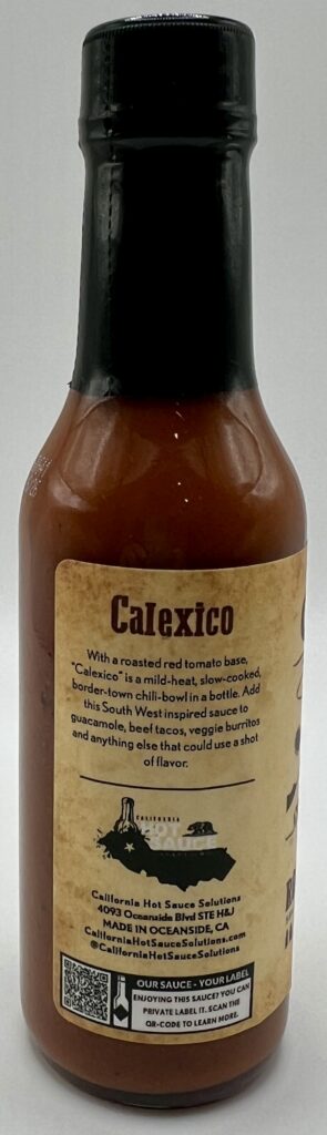 California Hot Sauce Solutions was formed by the founders of Paulman Acres and J’s Small Batch hot sauce companies both to produce their own sauces and to offer a high quality co-packing service for both new and existing hot sauce makers. This particular sauce doesn’t have any branding other than from California Hot Sauce Solutions itself and is described as a “border town chili-bowl in a bottle”.