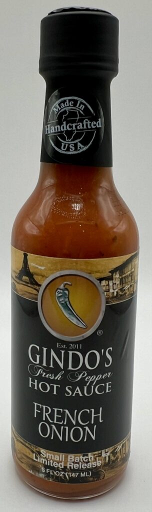 Gindo’s French Onion Hot Sauce has a great oniony aroma with some hints of the peppers inside. The consistency is medium with a great chunkiness, lots of onion and pepper bits inside. The biggest challenge in replicating a French Onion Soup in a hot sauce is what to do about the beef stock flavor, as animal products are very rare in hot sauces. Gindo’s took the route of using vegetable stock and them amping up the umami flavors with the addition of tamari (a gluten free Japanese version of a soy sauce) and porcini mushrooms to try to mimic that unctuous meaty flavor that a good beef stock provides. A blend of sweet and yellow onions bring lots of onion flavor to the sauce with habaneros bringing the heat. Some French influence is seen with the inclusion of red wine and red wine vinegar, and as is usual with Gindo’s a blend of boutique salts.