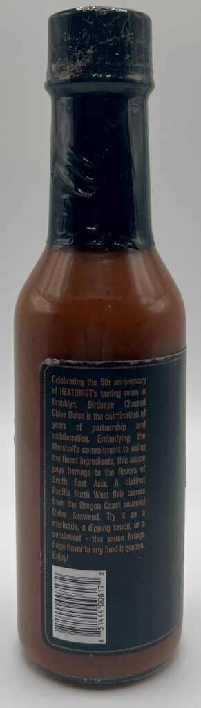 This is a bottle that killed three stones with one bird for me. I’ve been wanting to try Marshall’s Haute Sauce for quite a while as well as some of the Heatonist’s special anniversary hot sauces. Dulse, a type of red seaweed common in coastal Northern Europe, has also been on my radar.