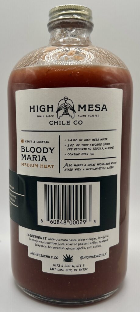 Having previously tried High Mesa Chile Co’s Roasted Fresno Hot Sauce and very much enjoying it I was looking forward to trying the other half of their business, their cocktail mixers. I enjoy a cocktail or two myself on occasion and Bloody Mary cocktails are one of my all-time favorites so I thought it would be time to give this a whirl. High Mesa Chile Co calls this a Bloody Maria mix as opposed to a Bloody Mary, but looking it up the only difference that I can see is that a Bloody Maria is typically made with tequila while the Bloody Mary is made with vodka.