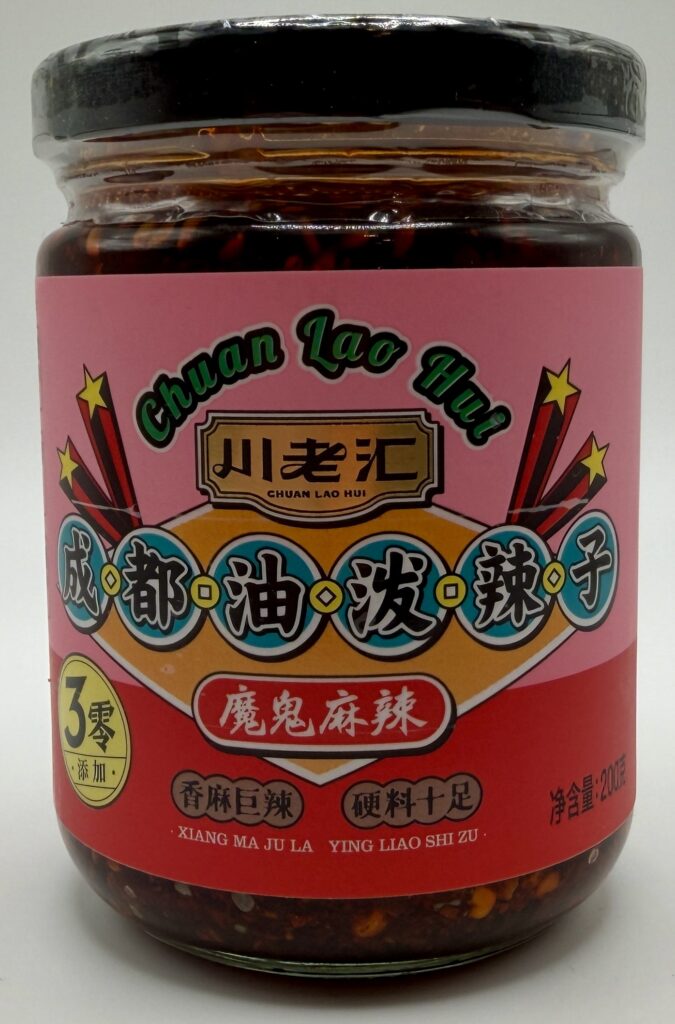 This is something I stumbled upon at an Asian grocery store when looking for chili crisps that may have a significant more kick than the old standby Lao Gan Ma. This particular bottle was on sale for a low price so I decided to roll the dice with it and see what I’d get. From what I can tell Chuan Lao Hui brand is based in the Chengdu region of Sichuan, China and they were originally most well known for their doubanjiang, which is a spicy Chinese bean paste used often in Sichuan cooking but have branched out since then into other products as well.