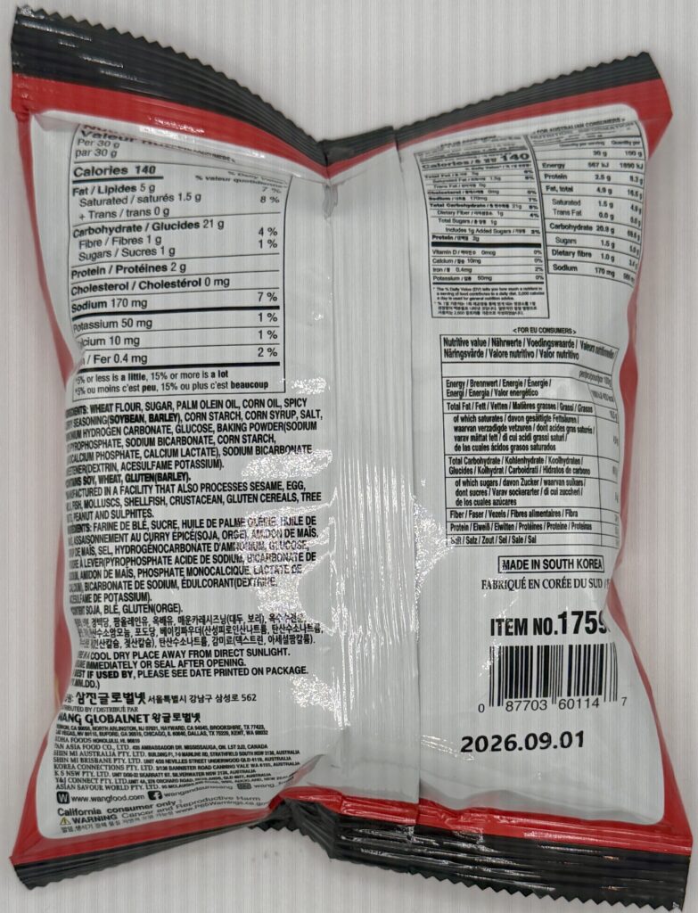 I saw these on the shelf of the local Asian grocery store and was intrigued. I’d previously tried the same brand’s garlic butter pretzels and found them great (though not even pretending to be spicy so I didn’t bother to write them up for this website). Gugen appears to be a South Korean brand and according to the back of the bag these are indeed a product of South Korea. As a fan of both Korean BBQ and Korean Fried Chicken I decided I’d give these a go.
