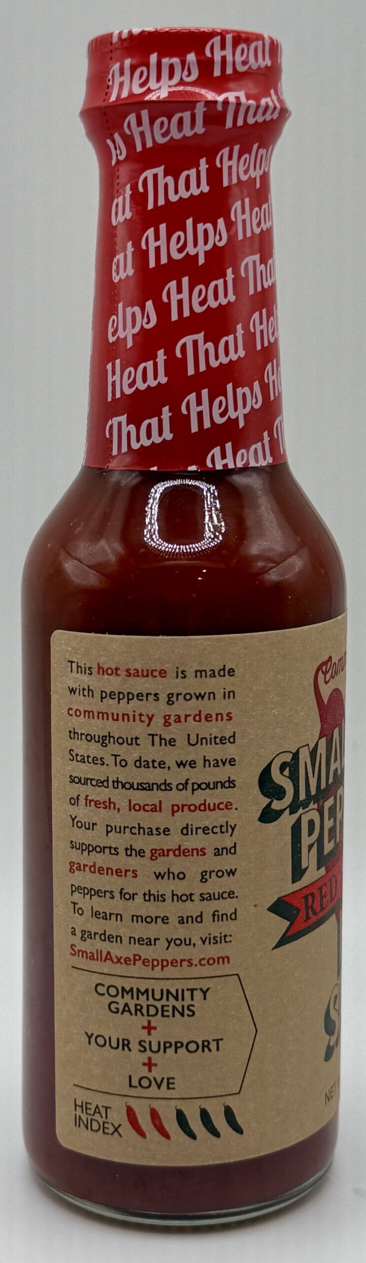 I’m happy to recommend Small Axe Peppers Red Serrano Hot Sauce. It’s delicious, it helps support community gardens, it’s flexible, and it’s also all natural with no artificial preservatives, colors, flavors, or thickeners.